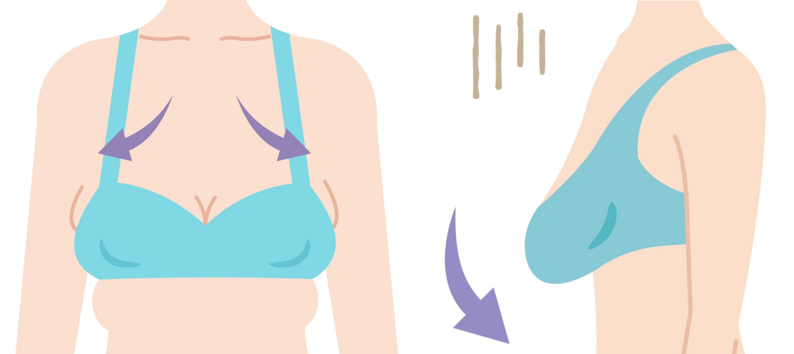 背中や脇部分の横流れするバストも