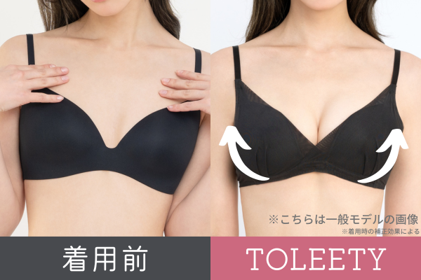 締め付け感が苦手で毎日ノンワイヤーブラかカップ付きインナーを愛用していました。正直、もっと気分が上がる可愛い下着をつけられたらって思いつつ諦めていました。でもTOLEETYはほどよく谷間※が見えて、ちょっとした透け感があるところに女性らしさを感じられてお気に入りです!💖※着用時の補正効果による